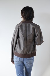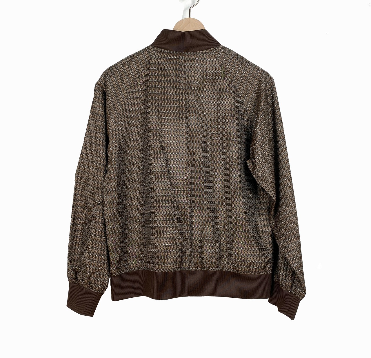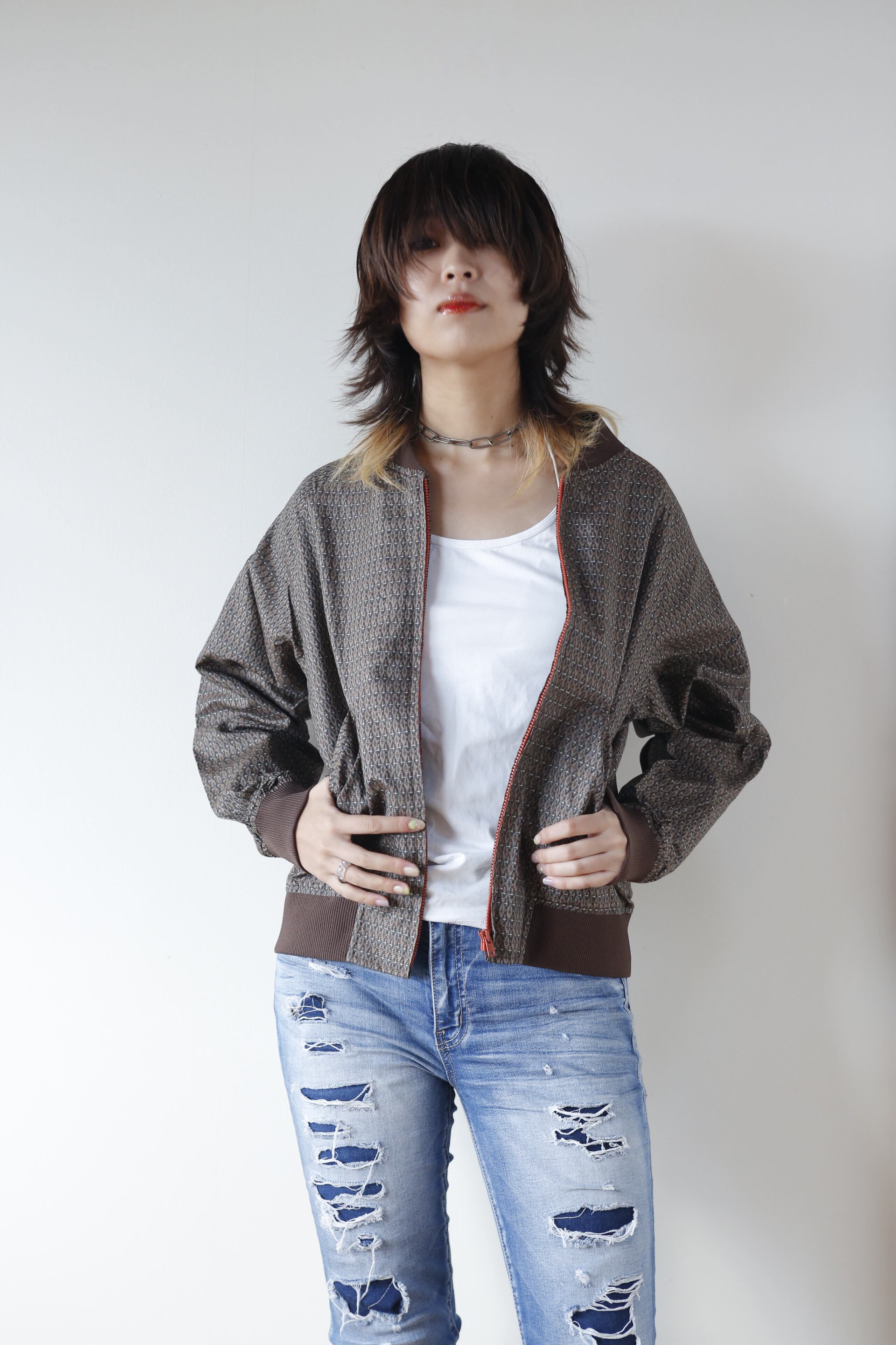 "O-SHIMA BASIC" is a single short blouson made from Oshima Tsumugi. It has a slightly crisp hardness and is characterized by its single layer design, which is very light and comfortable to wear. The raglan sleeve design has a slimming effect and gives a sophisticated impression. By using orange for the zipper and adding an accent color to the almost plain brown color, we added a simple yet unique accent. The coloring goes well with daily coordination, so it is sure to be useful for a wide range of styling. We hope you will experience the stylish and functional style that "O-SHIMA BASIC" brings to you.